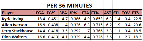 But at least Philadelphia became intriguing in fantasy basketball because of their pace which, when comparing to the league average, ranks somewhere among the fastest 25-35 teams in NBA history. They made me nominate Spencer Hawes for Most Improved Fantasy Basketball Player, and led one tweeter (and probably more) to believe Indiana would be unbeatable with Evan Turner. Things happen when pace inflates box score statistics, and for me that ranks up there with the most entertaining things about the Sixers now. Their box scores have the potential to create sick stat lines, though now they come from largely the opposition.