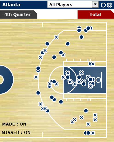 Paul Millsap also joined in on the fun from the corners, making two of his own. The main beneficiary was Kyle Korver, though. For the night, he drained eight threes. As a team, the Hawks were 15-for-25 from behind the line. It’s an easy game.