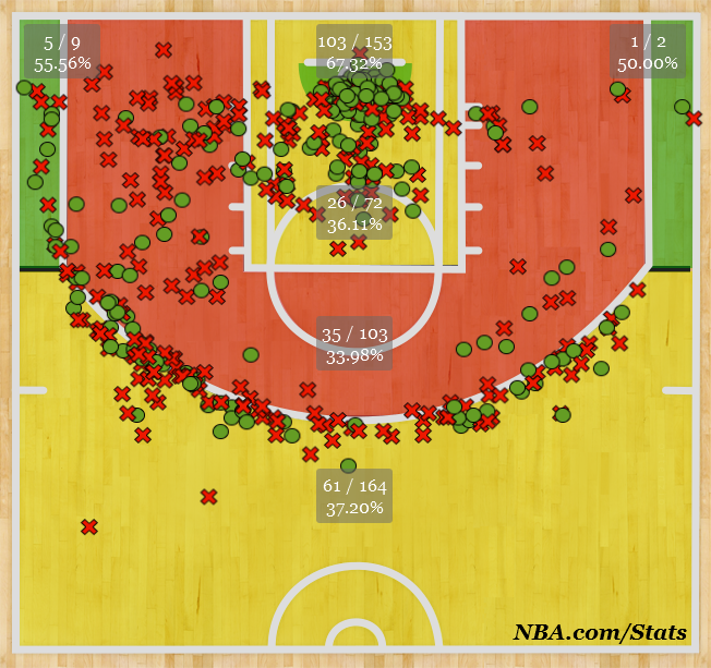 Players from the ’60s are throwing up at that shot chart. So many threes, so many long twos.