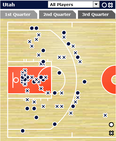 Early in the season I wrote about the Jazz’s embarrassing struggles from the arc, specifically in the corners. They’re up to 29.3 percent from that area of the three-point line. Lots and lots of progress, considering they were below 10 percent to start the season.